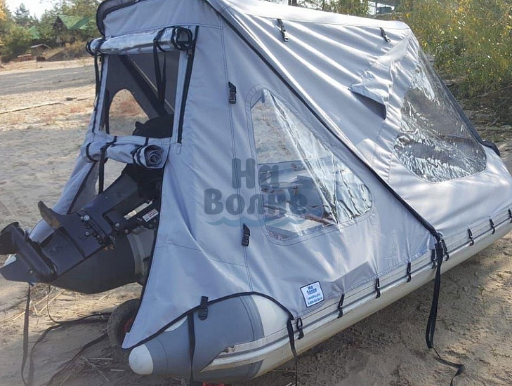 Ходовой тент позволяющий открывать любую сторону лодки: нос, корму или борта/ При этом остальные части тента остаются на каркасе для защиты от ветра или солнца.